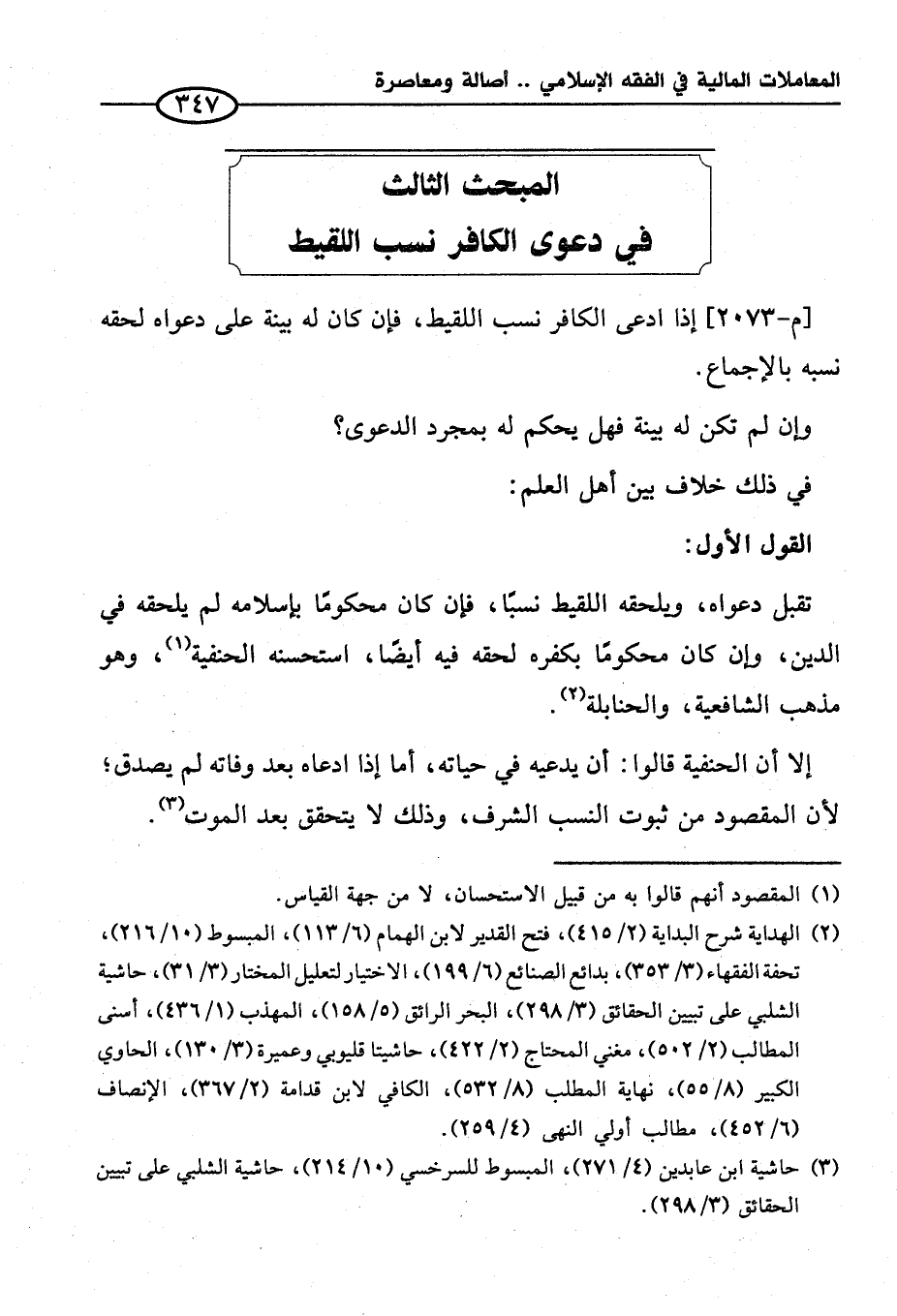 المبحث الثالث في دعوى الكافر نسب اللقيط