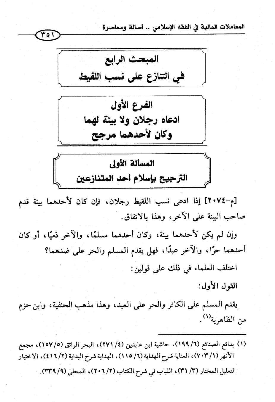 المسأله الأولى الترجيح بإسلام أحد المتنازعين