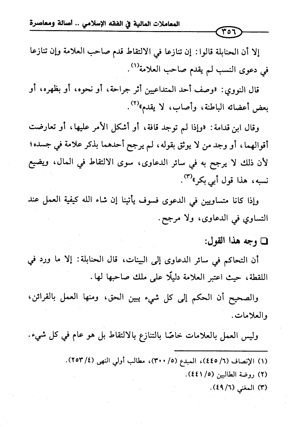 أن التحاكم في سائر الدعاوى إلى البينات، قال الحنابلة: إلا ما ورد في اللقطة، حيث اعتبر العلامة دليلًا على ملك صاحبها لها.