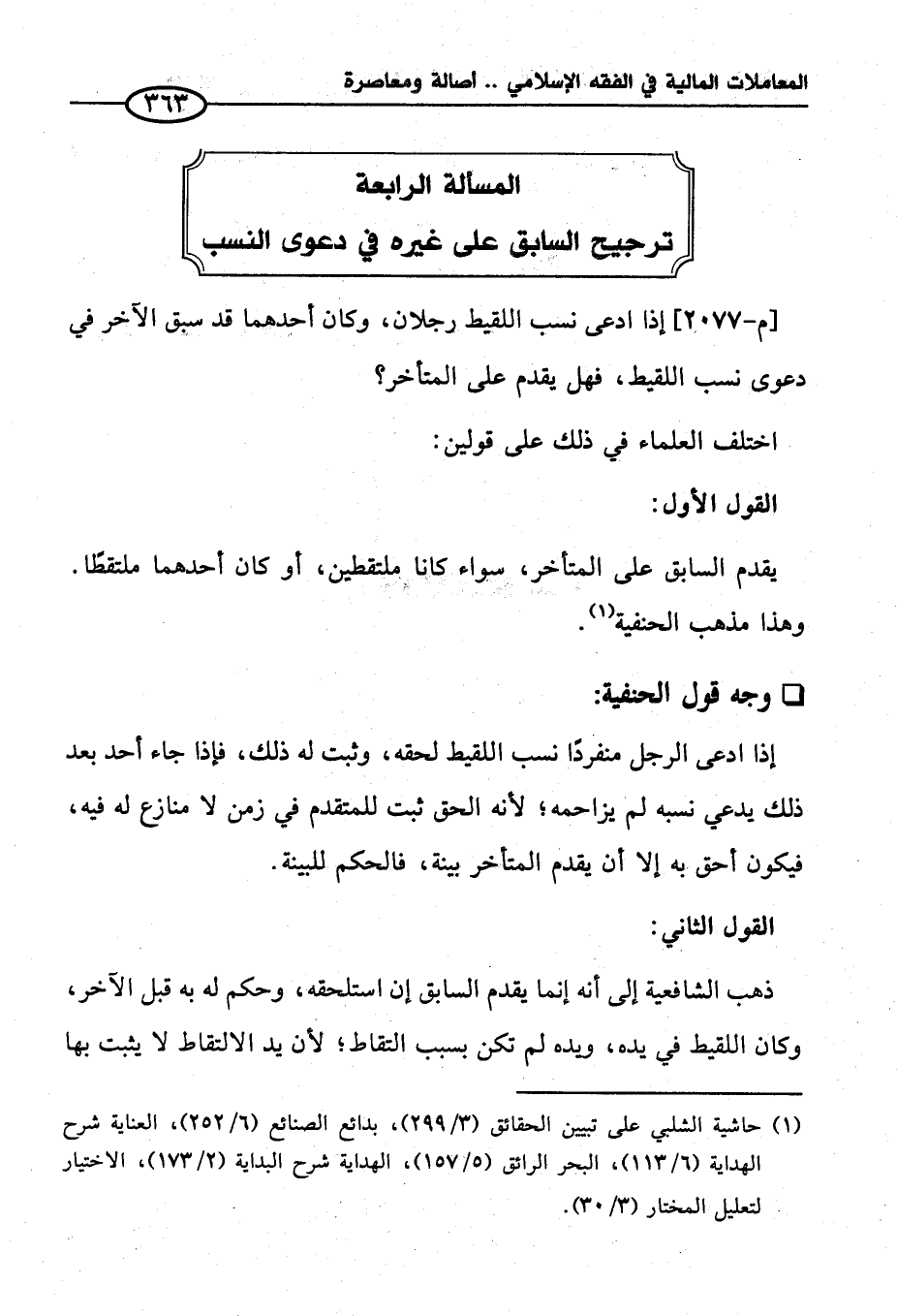 المسألة الرابعة ترجيح السابق على غيره في دعوى النسب