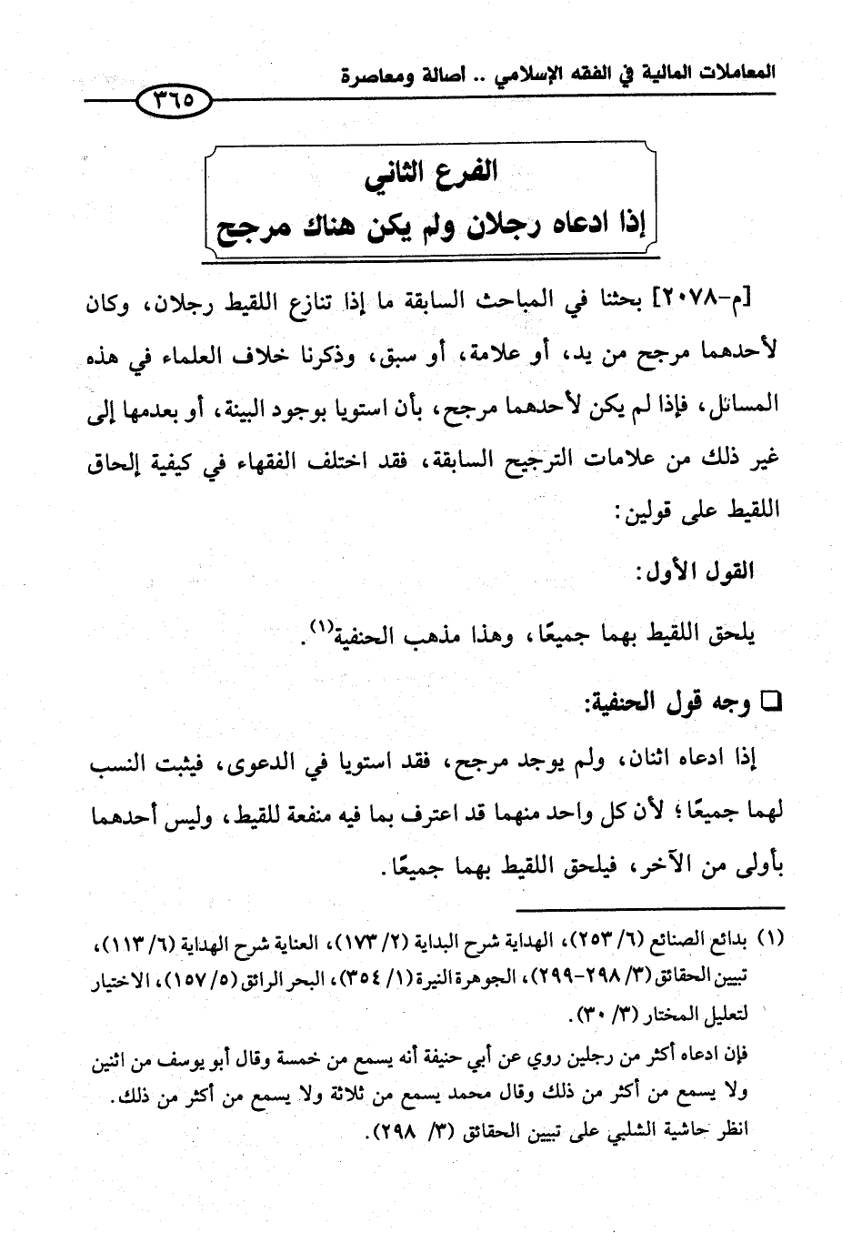 الفرع الثاني إذا ادعاه رجلان ولم يكن هناك مرجح