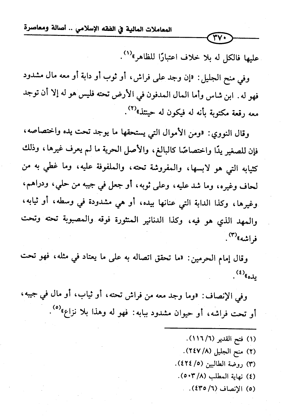 وقال النووي: "ومن الأموال التي يستحقها ما يوجد تحت يده واختصاصه، فإن للصغير يدًا واختصاصًا كالبالغ، والأصل الحرية ما لم يعرف غيرها، وذلك كثيابه التي هو لابسها، والمفروشة تحته، والملفوفة عليه، وما غطي به من لحاف وغيره، وما شد عليه، وعلى ثوبه، أو جعل في جيبه من حلي، ودراهم، وغيرها، وكذا الدابة التي عنانها بيده، أو هي مشدودة في وسطه، أو ثيابه، والمهد الذي هو فيه، وكذا الدنانير المنثورة فوقه والمصبوبة تحته وتحت فراشه" (¬٣).