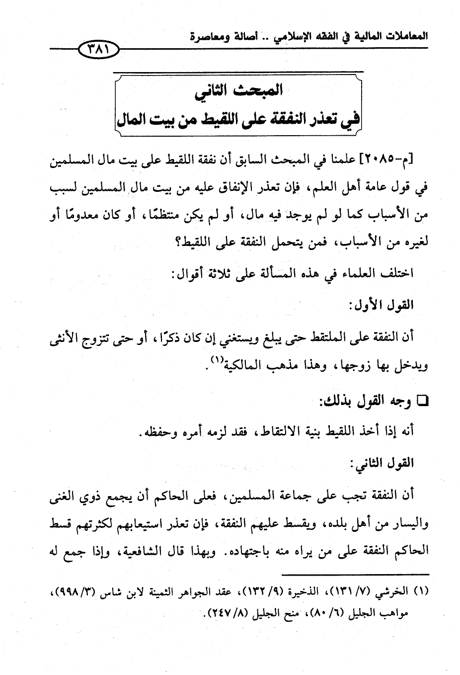 (¬١) الخرشي (٧/ ١٣١)، الذخيرة (٩/ ١٣٢)، عقد الجواهر الثمينة لابن شاس (٣/ ٩٩٨)، مواهب الجليل (٦/ ٨٠)، منح الجليل (٨/ ٢٤٧).
