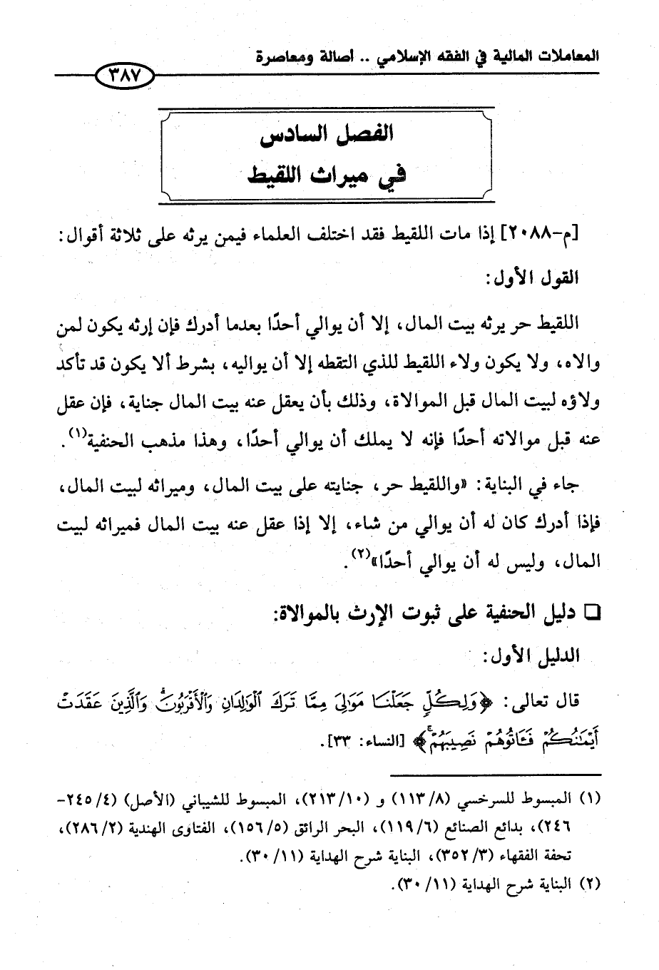 قال تعالى: {وَلِكُلٍّ جَعَلْنَا مَوَالِيَ مِمَّا تَرَكَ الْوَالِدَانِ وَالْأَقْرَبُونَ وَالَّذِينَ عَقَدَتْ أَيْمَانُكُمْ فَآتُوهُمْ نَصِيبَهُمْ (٣٣)} [النساء: ٣٣].