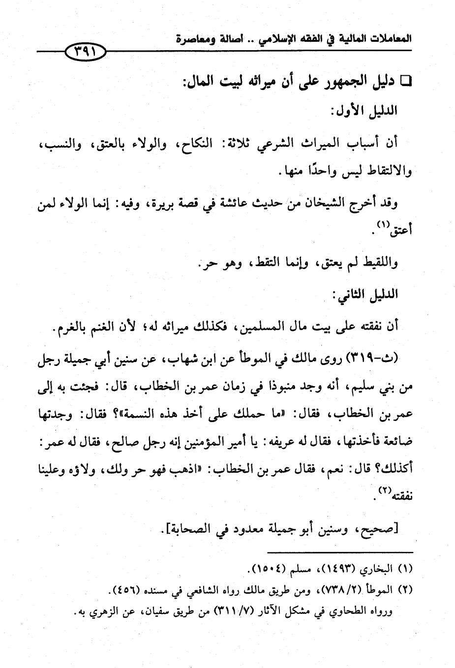 ° دليل الجمهور على أن ميراثه لبيت المال: