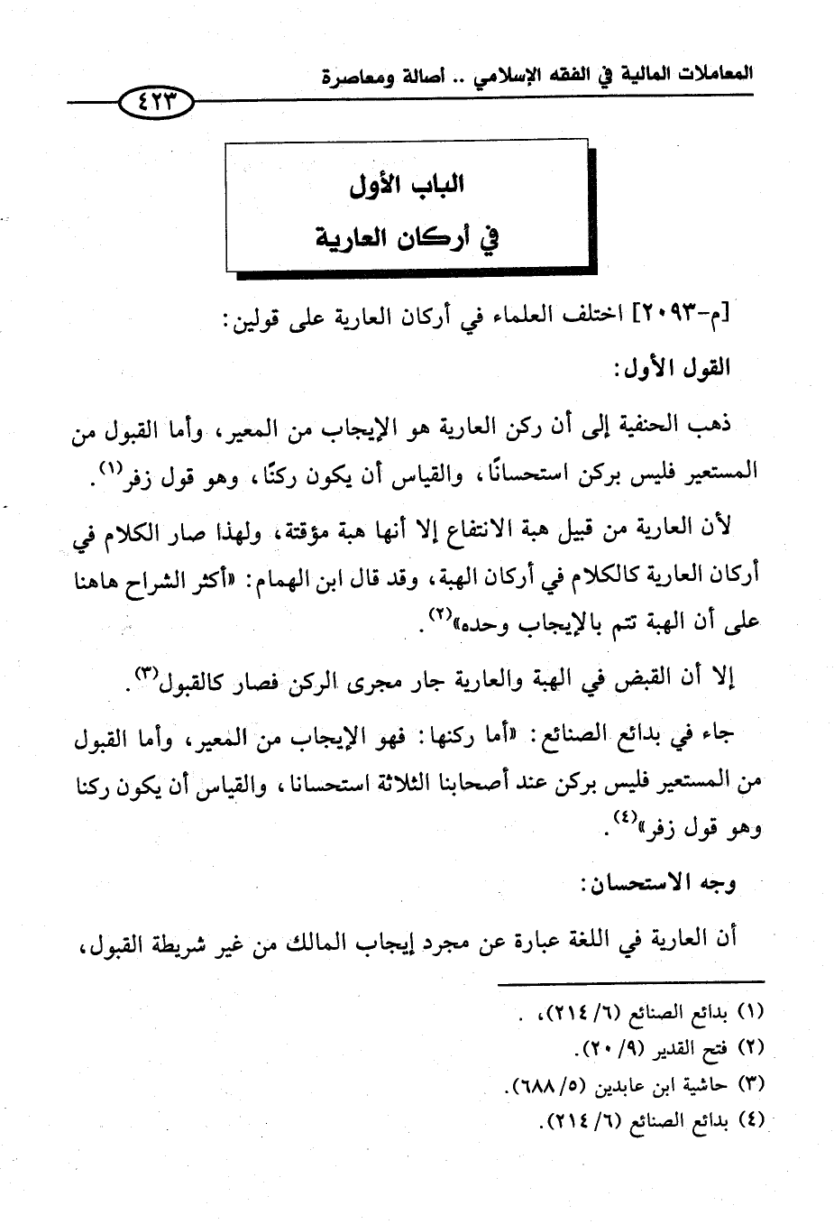 الباب الأول في أركان العارية