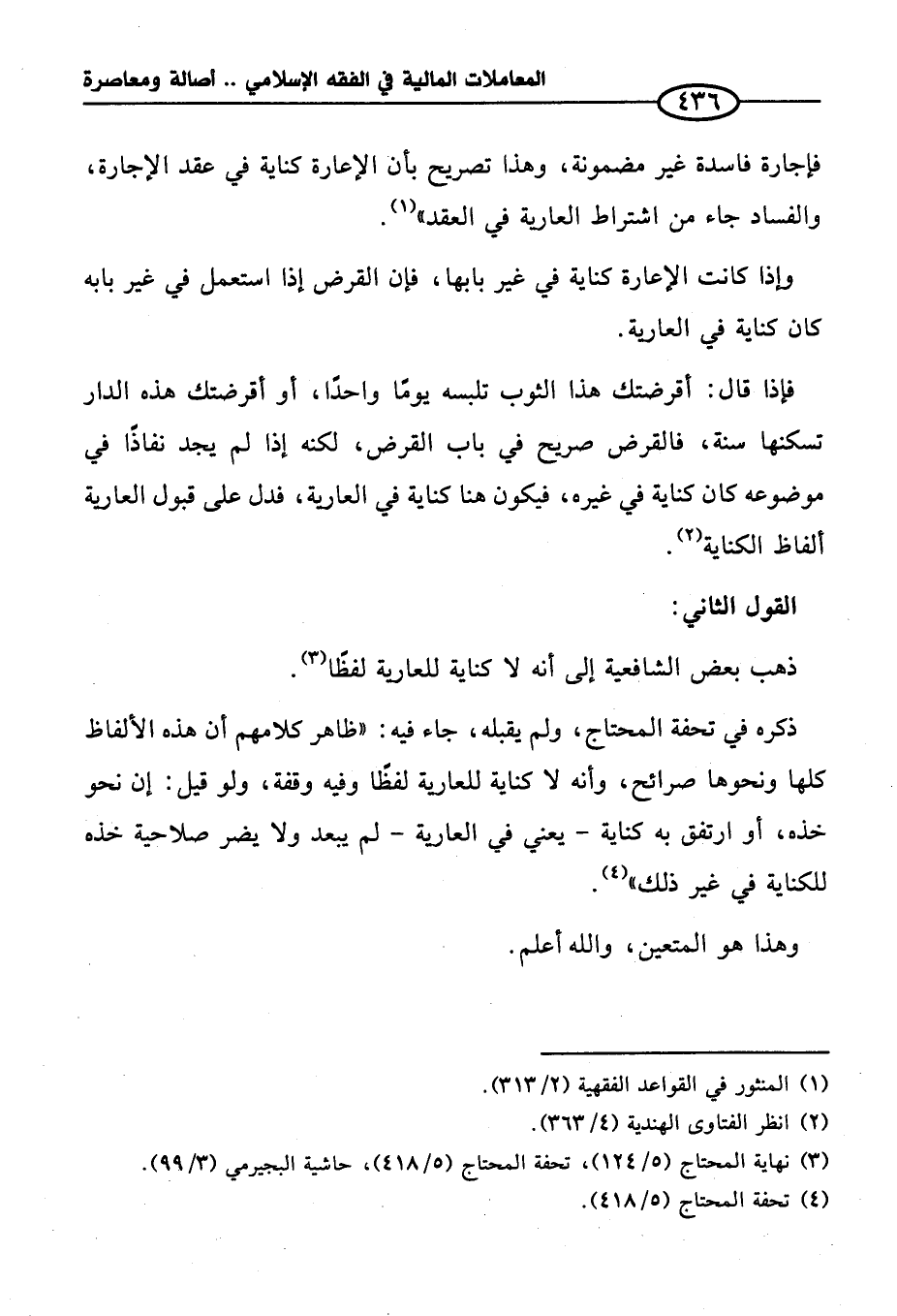 فإذا قال: أقرضتك هذا الثوب تلبسه يومًا واحدًا، أو أقرضتك هذه الدار تسكنها سنة، فالقرض صريح في باب القرض، لكنه إذا لم يجد نفاذًا في موضوعه كان كناية في غيره، فيكون هنا كناية في العارية، فدل على قبول العارية ألفاظ الكناية (¬٢).
