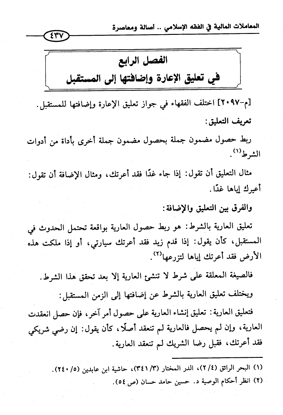الفصل الرابع في تعليق الإعارة وإضافتها إلى المستقبل