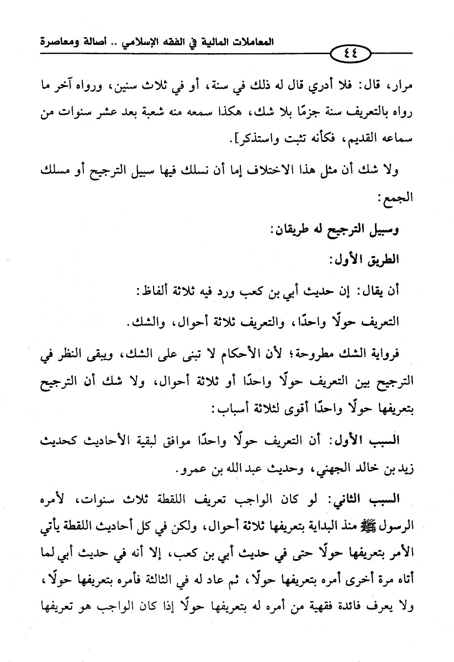 فرواية الشك مطروحة؛ لأن الأحكام لا تبنى على الشك، ويبقى النظر في الترجيح بين التعريف حولًا واحدًا أو ثلاثة أحوال، ولا شك أن الترجيح بتعريفها حولًا واحدًا أقوى لثلاثة أسباب: