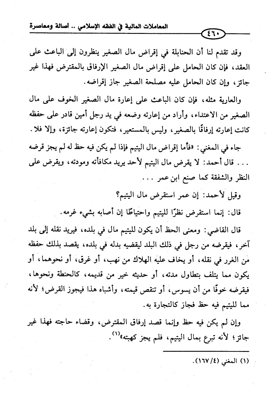 وقد تقدم لنا أن الحنابلة في إقراض مال الصغير ينظرون إلى الباعث على العقد، فإن كان الحامل على إقراض مال الصغير الإرفاق بالمقترض فهذا غير جائز، وإن كان الحامل عليه مصلحة الصغير جاز إقراضه.