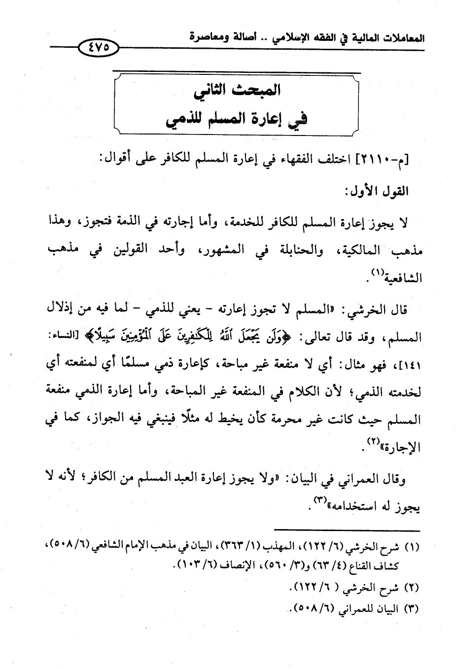 المبحث الثاني في إعارة المسلم للذمي
