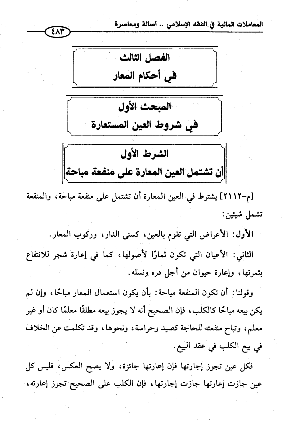 المبحث الأول في شروط العين المستعارة