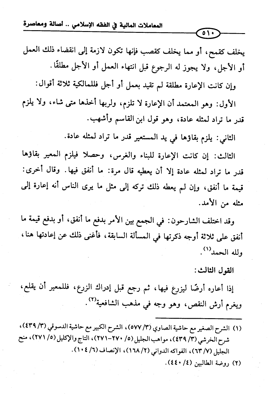 (¬١) الشرح الصغير مع حاشية الصاوي (٣/ ٥٧٧)، الشرح الكبير مع حاشية الدسوقي (٣/ ٤٣٩)، شرح الخرشي (٣/ ٤٣٩)، مواهب الجليل (٥/ ٢٧٠ - ٢٧١)، التاج والإكليل (٥/ ٢٧١)، منح الجليل (٧/ ٦٣)، الفواكه الدواني (٢/ ١٦٨)، الإنصاف (٦/ ١٠٤).