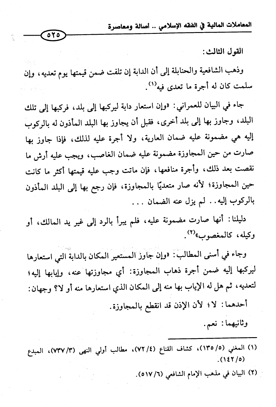 وجاء في أسنى المطالب: "وإن جاوز المستعير المكان بالدابة التي استعارها ليركبها إليه ضمن أجرة ذهاب المجاوزة: أي مجاوزتها عنه، وإيابها إليه؛ لتعديه، ثم هل له الإياب بها منه إلى المكان الذي استعارها منه أو لا؟ وجهان: