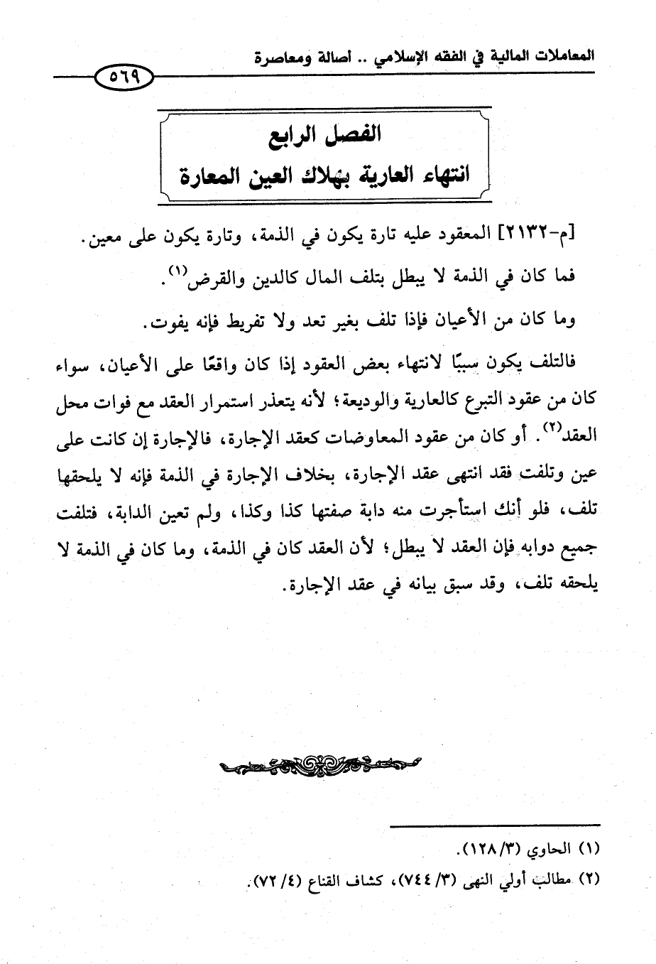 الفصل الرابع انتهاء العارية بهلاك العين المعارة