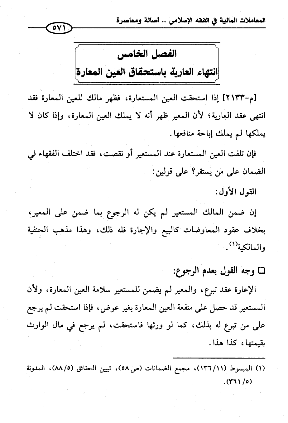 (¬١) المبسوط (١١/ ١٣٦)، مجمع الضمانات (ص ٥٨)، تبيين الحقائق (٥/ ٨٨)، المدونة (٥/ ٣٦١).