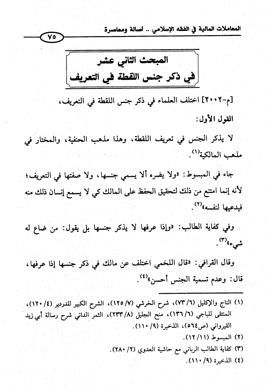 المبحث الثاني عشر في ذكر جنس اللقطة في التعريف