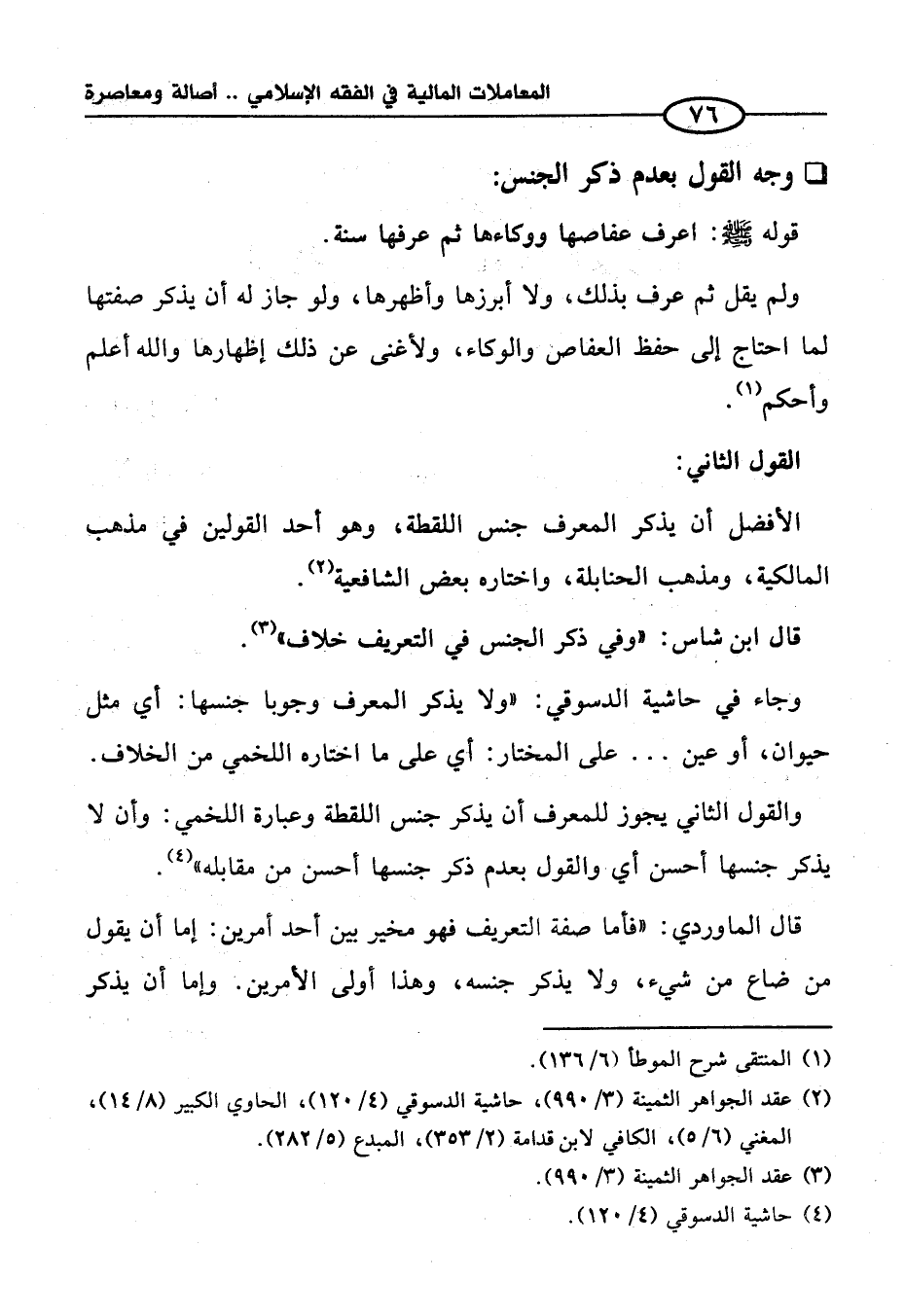 والقول الثاني يجوز للمعرف أن يذكر جنس اللقطة وعبارة اللخمي: وأن لا يذكر جنسها أحسن أي والقول بعدم ذكر جنسها أحسن من مقابله" (¬٤).