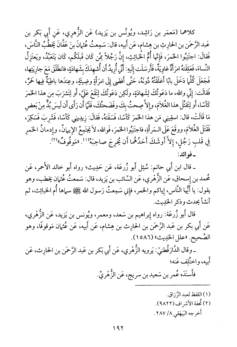 قال أَبو زُرعَة: رواه إبراهيم بن سعد، ومعمر، ويونس بن يزيد، عن الزُّهْري، عن أَبي بكر بن عبد الرَّحمَن بن الحارث بن هشام، عن أبيه، عن عثمان موقوفًا، وهو الصحيح. «علل الحديث» (١٥٨٦).