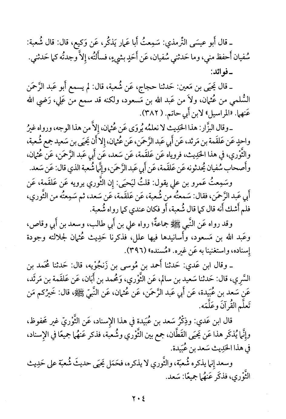 - قال يَحيى بن مَعين: حدثنا حجاج، عن شعبة، قال: لم يسمع أَبو عبد الرَّحمَن السُّلمي من عثمان. «المراسيل» لابن أَبي حاتم (٣٨٢).