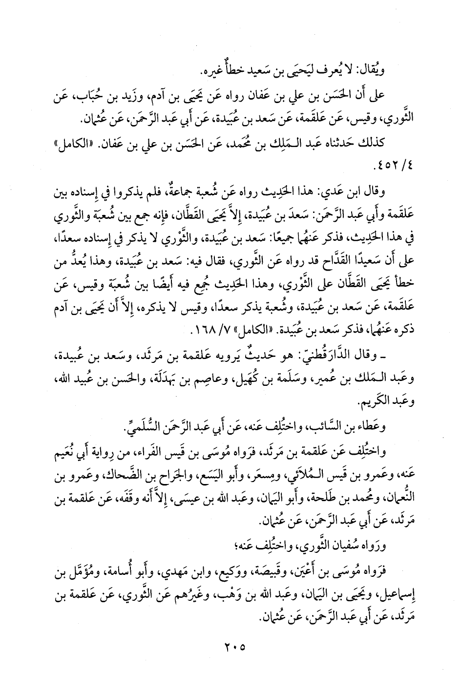 فرواه موسى بن أَعْيَن، وقَبيصَة، ووكيع، وابن مهدي، وأَبو أُسامة، ومُؤَمَّل بن إسماعيل، ويحيى بن اليمان، وعبد الله بن وهب، وغيرهم عن الثوري، عن علقمة بن مَرثد، عن أبي عبد الرَّحمَن، عن عثمان.