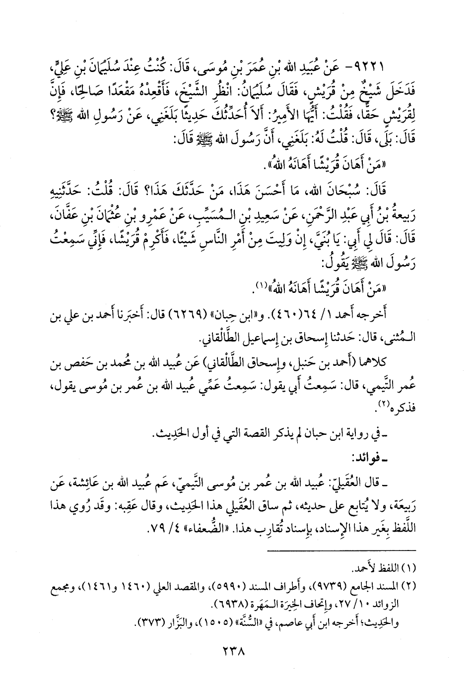 كلاهما (أحمد بن حنبل، وإسحاق الطَّالْقَاني) عن عُبيد الله بن محمد بن حفص بن عمر التيمي، قال: سمعت أبي يقول: سمعت عمي عُبيد الله بن عمر بن موسى يقول، فذكره (¬٢).