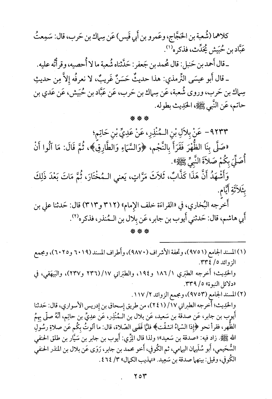 ٩٢٣٣ - عن بلال بن المنذر، عن عَدي بن حاتم؛