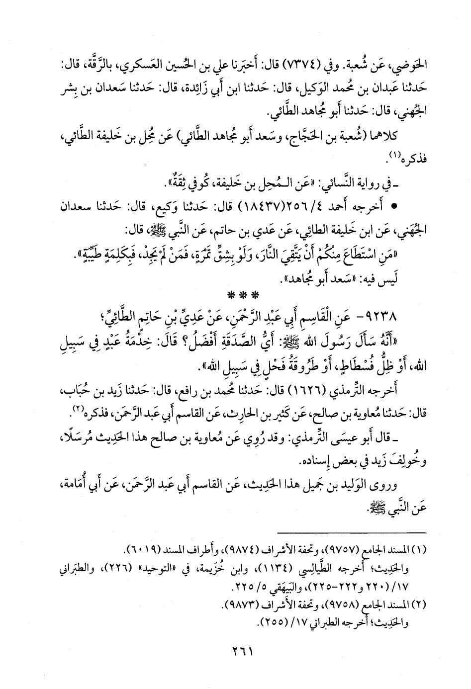 ٩٢٣٨ - عن القاسم أبي عبد الرَّحمَن، عن عَدي بن حاتم الطائي؛