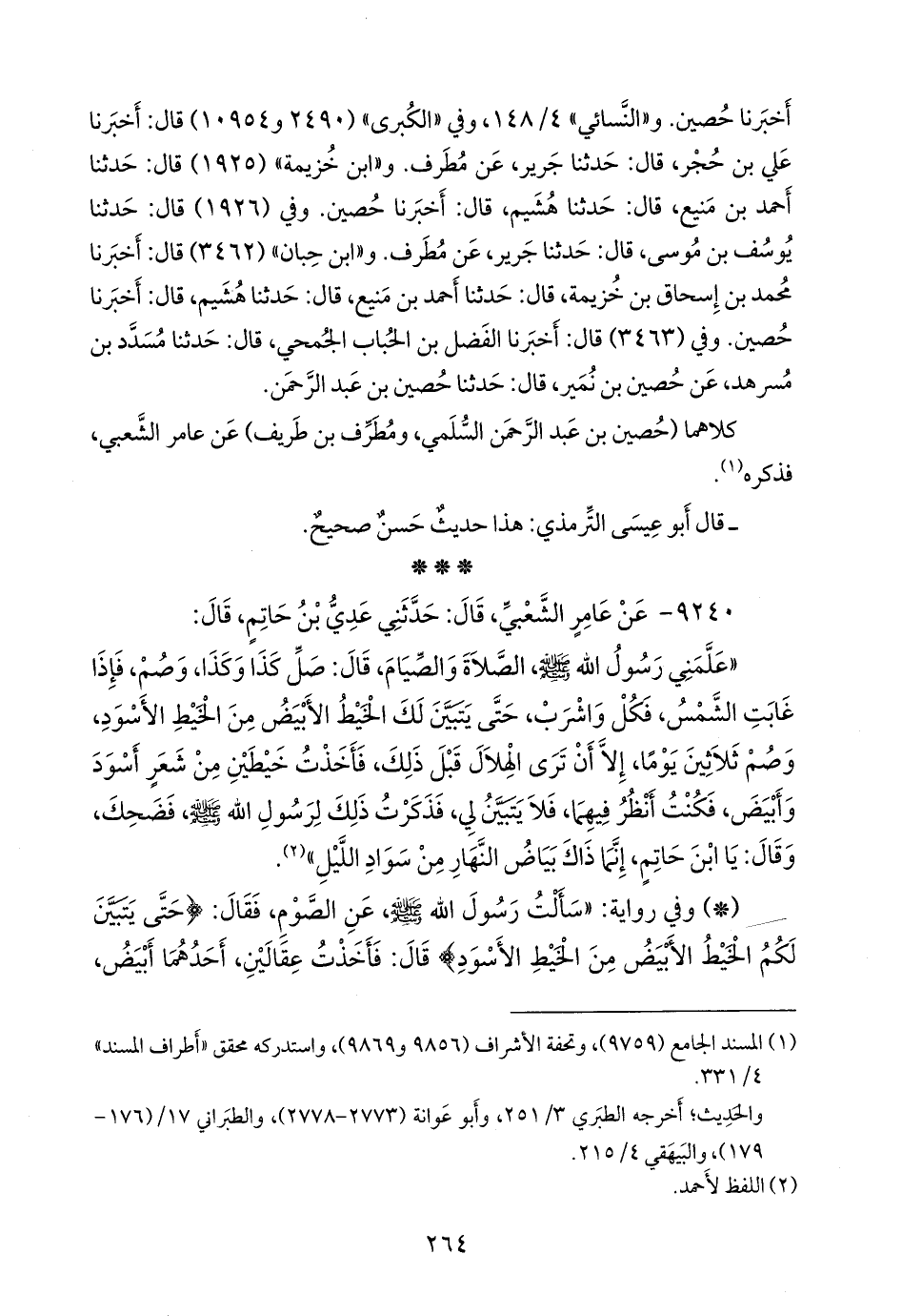 ٩٢٤٠ - عن عامر الشعبي، قال: حدثني عَدي بن حاتم، قال: