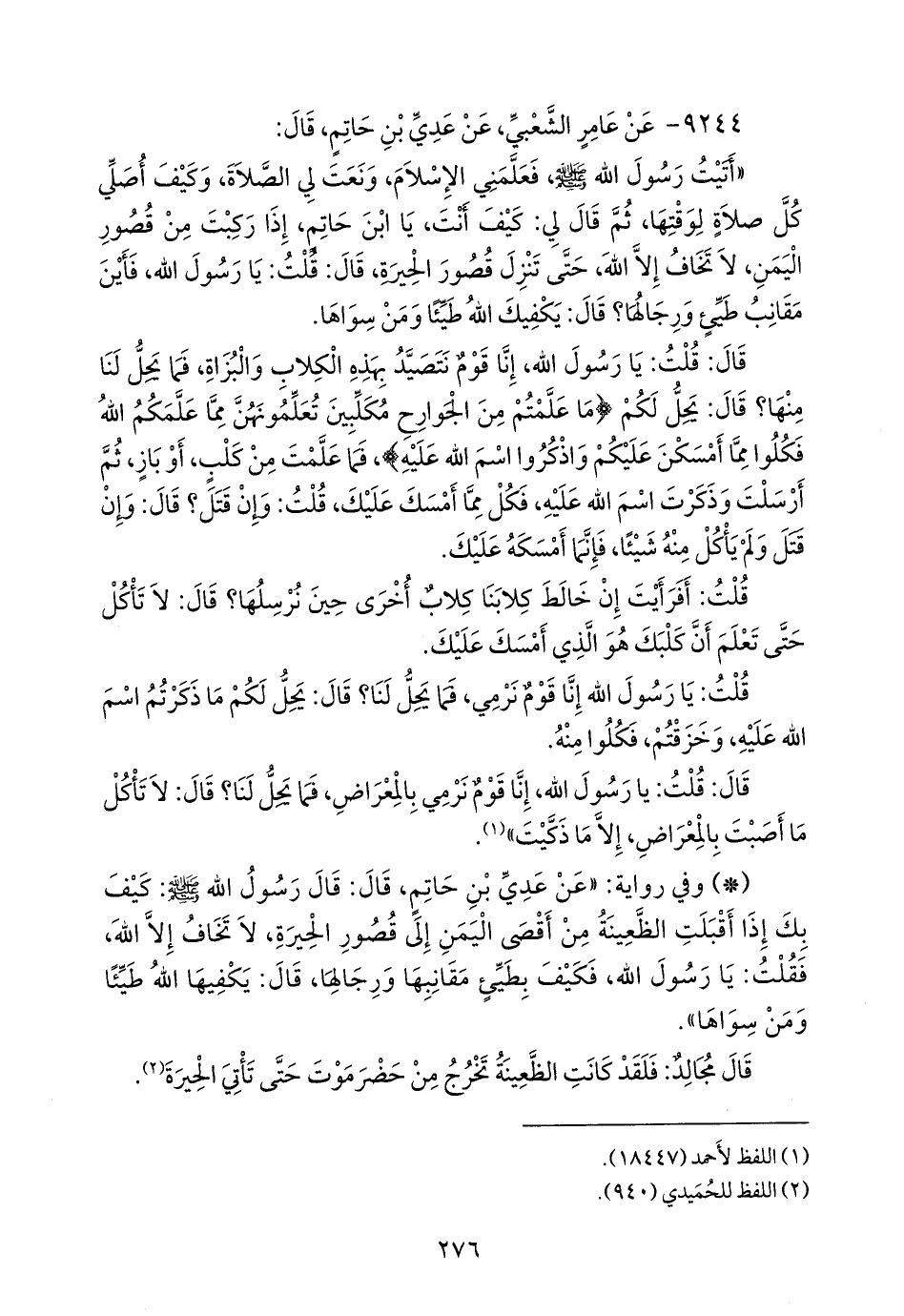 ٩٢٤٤ - عن عامر الشعبي، عن عَدي بن حاتم، قال: