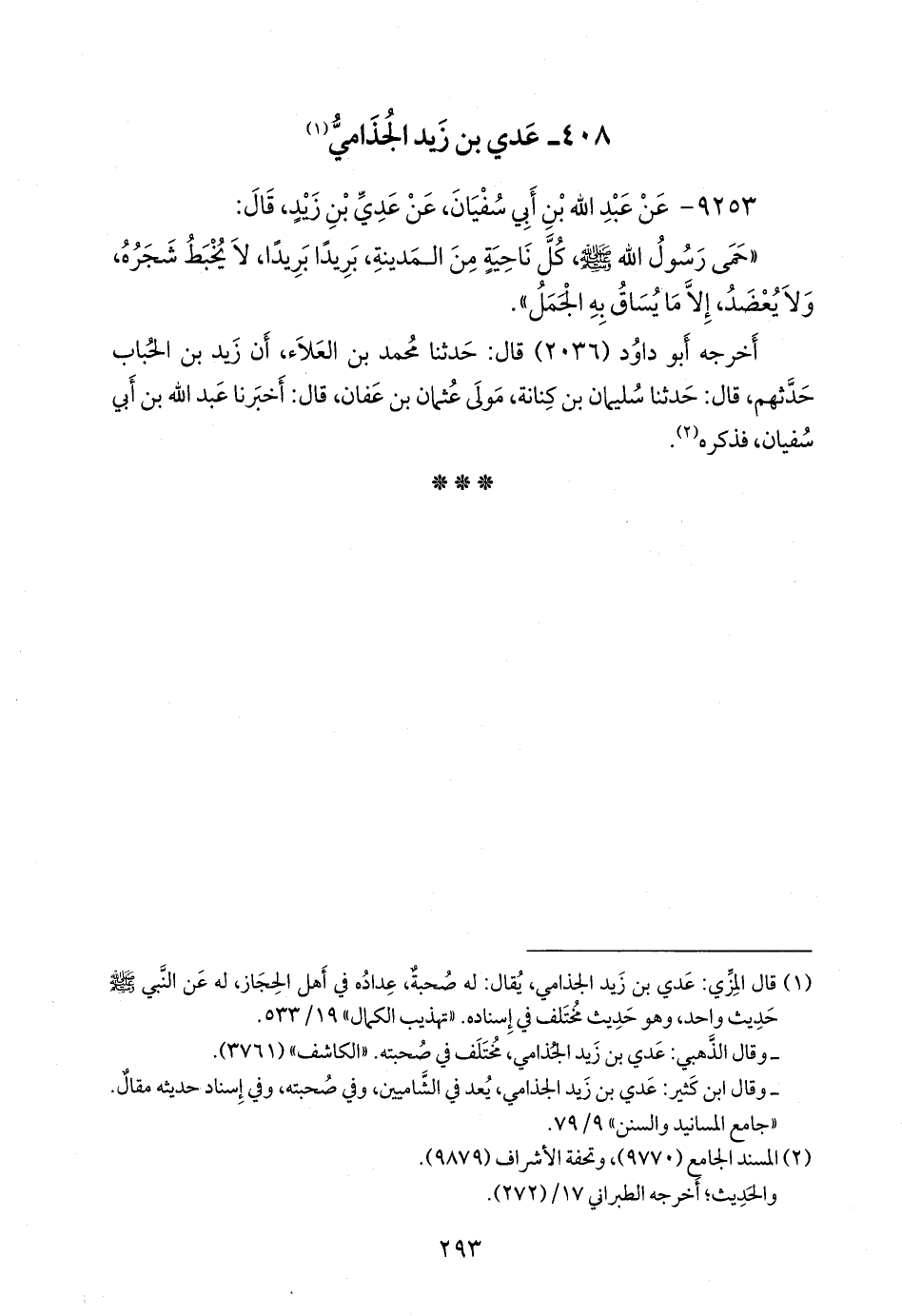 (¬١) قال المِزِّي: عَدي بن زيد الجذامي، يقال: له صحبة، عداده في أهل الحجاز، له عن النبي صَلى الله عَليه وسَلم حديث واحد، وهو حديث مختلف في إسناده. «تهذيب الكمال» ١٩/ ٥٣٣.