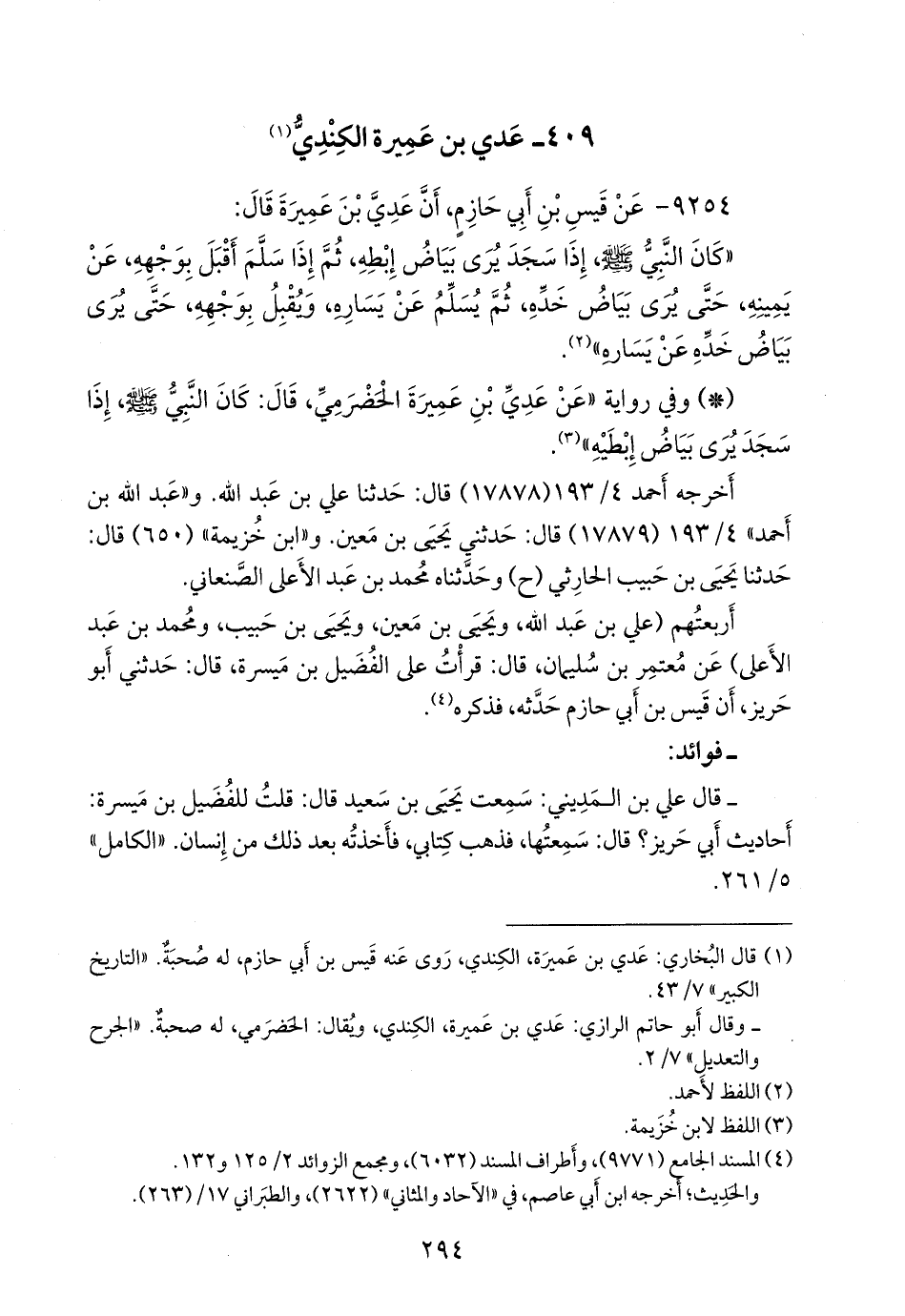 (¬١) قال البخاري: عَدي بن عميرة، الكندي، روى عنه قيس بن أبي حازم، له صحبة. «التاريخ الكبير» ٧/ ٤٣.