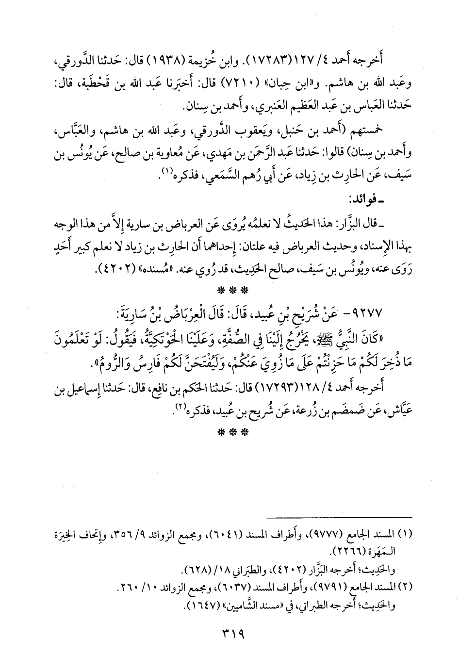 ٩٢٧٧ - عن شريح بن عبيد، قال: قال العرباض بن سارية: