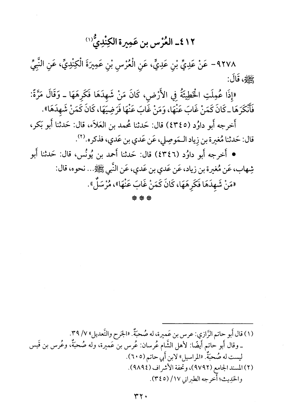 ٩٢٧٨ - عن عَدي بن عَدي، عن العرس بن عميرة الكندي، عن النبي صَلى الله عَليه وسَلم قال: