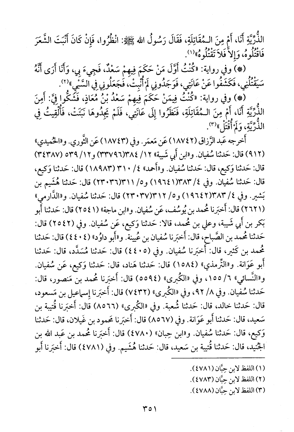 وفي (٢٥٤٢) قال: حدثنا محمد بن الصباح، قال: أخبرنا سفيان بن عُيينة. و «أَبو داود» (٤٤٠٤) قال: حدثنا محمد بن كثير، قال: أخبرنا سفيان. وفي (٤٤٠٥) قال: حدثنا مُسدد، قال: حدثنا أَبو عَوانة. و «التِّرمِذي» (١٥٨٤) قال: حدثنا هَنَّاد، قال: حدثنا وكيع، عن سفيان. و «النَّسَائي» ٦/ ١٥٥، وفي «الكبرى» (٥٥٩٤) قال: أخبرنا محمد بن منصور، قال: حدثنا سفيان. وفي ٨/ ٩٢، وفي «الكبرى» (٧٤٣٢) قال: أخبرنا إسماعيل بن مسعود، قال: حدثنا خالد، قال: حدثنا شعبة. وفي «الكبرى» (٨٥٦٦) قال: أخبرنا قتيبة بن سعيد، قال: حدثنا أَبو عَوانة. وفي (٨٥٦٧) قال: أخبرنا محمود بن غَيلان، قال: حدثنا وكيع، قال: حدثنا سفيان. و «ابن حِبَّان» (٤٧٨٠) قال: أخبرنا محمد بن عبد الله بن الجنيد، قال: حدثنا قتيبة بن سعيد، قال: حدثنا هُشيم. وفي (٤٧٨١) قال: أخبرنا أَبو