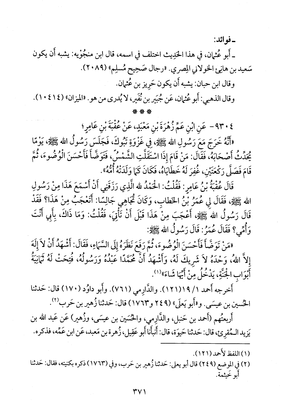 ٩٣٠٤ - عن ابن عم زَهرة بن مَعبد، عن عقبة بن عامر؛
