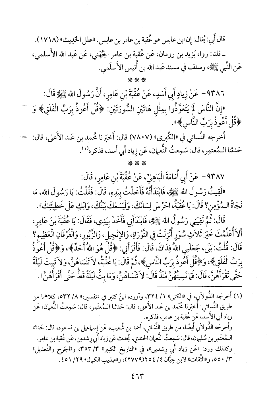 (¬١) أخرجه الدولابي في «الكنى» ١/ ٣٢٤، وأورده ابن كثير في «تفسيره» ٨/ ٥٣٢، كلاهما من طريق النَّسَائي: أخبرنا محمد بن عبد الأعلى، قال: حدثنا المُعتَمِر، قال: سمعت النعمان، عن زياد أبي الأسد، عن عقبة بن عامر، فذكره.