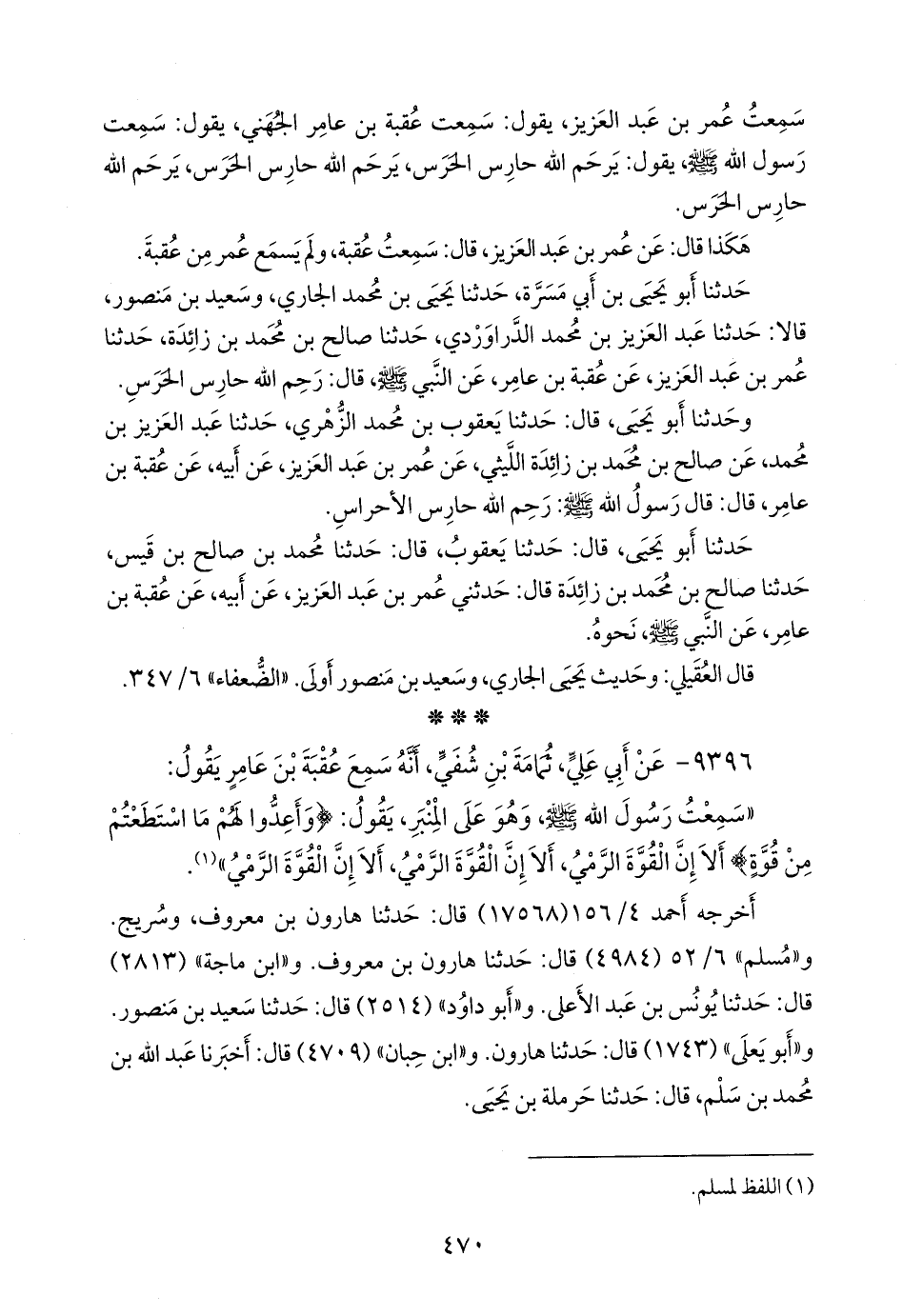(¬٢) المسند الجامع (٩٩٠٧)، وتحفة الأشراف (٩٩١١)، وأطراف المسند (٦٠٦٣).