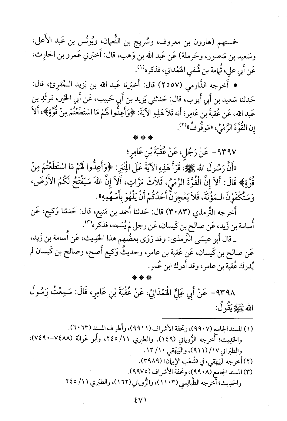 ٩٣٩٨ - عن أبي علي الهمداني، عن عقبة بن عامر، قال: سمعت رسول الله صَلى الله عَليه وسَلم يقول: