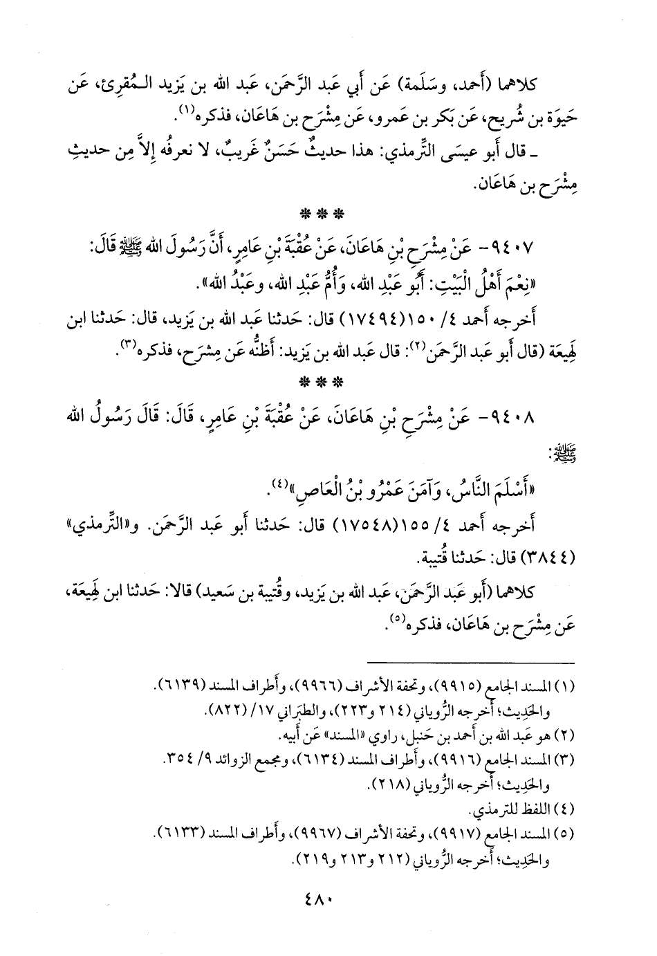 ٩٤٠٧ - عن مشرح بن هاعان، عن عقبة بن عامر، أن رسول الله صَلى الله عَليه وسَلم قال: