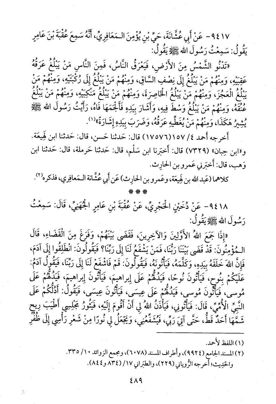 ٩٤١٨ - عن دخين الحجري, عن عقبة بن عامر الجهني، قال: سمعت رسول الله صَلى الله عَليه وسَلم يقول: