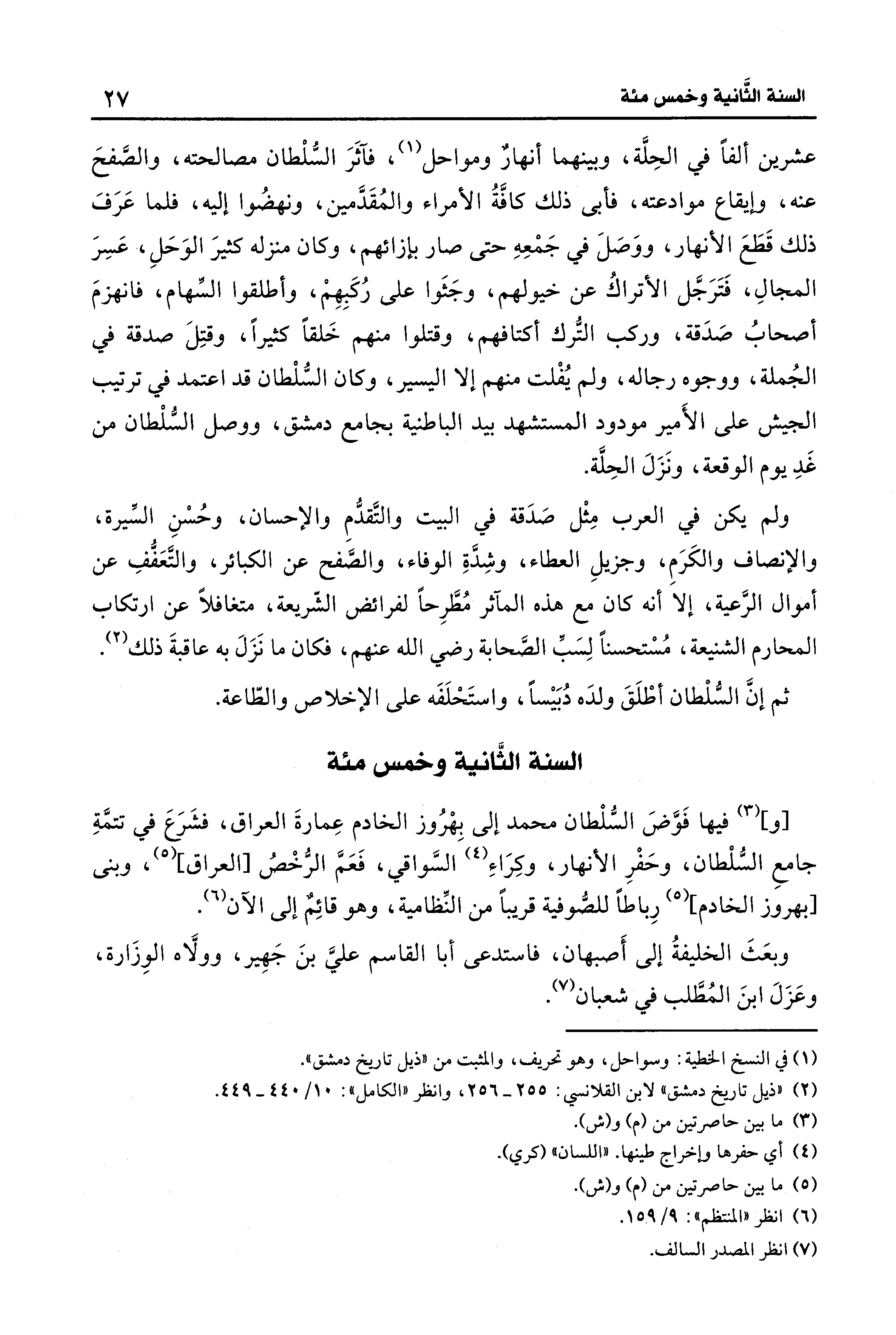 (¬2) "ذيل تاريخ دمشق" لابن القلانسي: 255 - 256، وانظر "الكامل": 15/ 440 - 449.