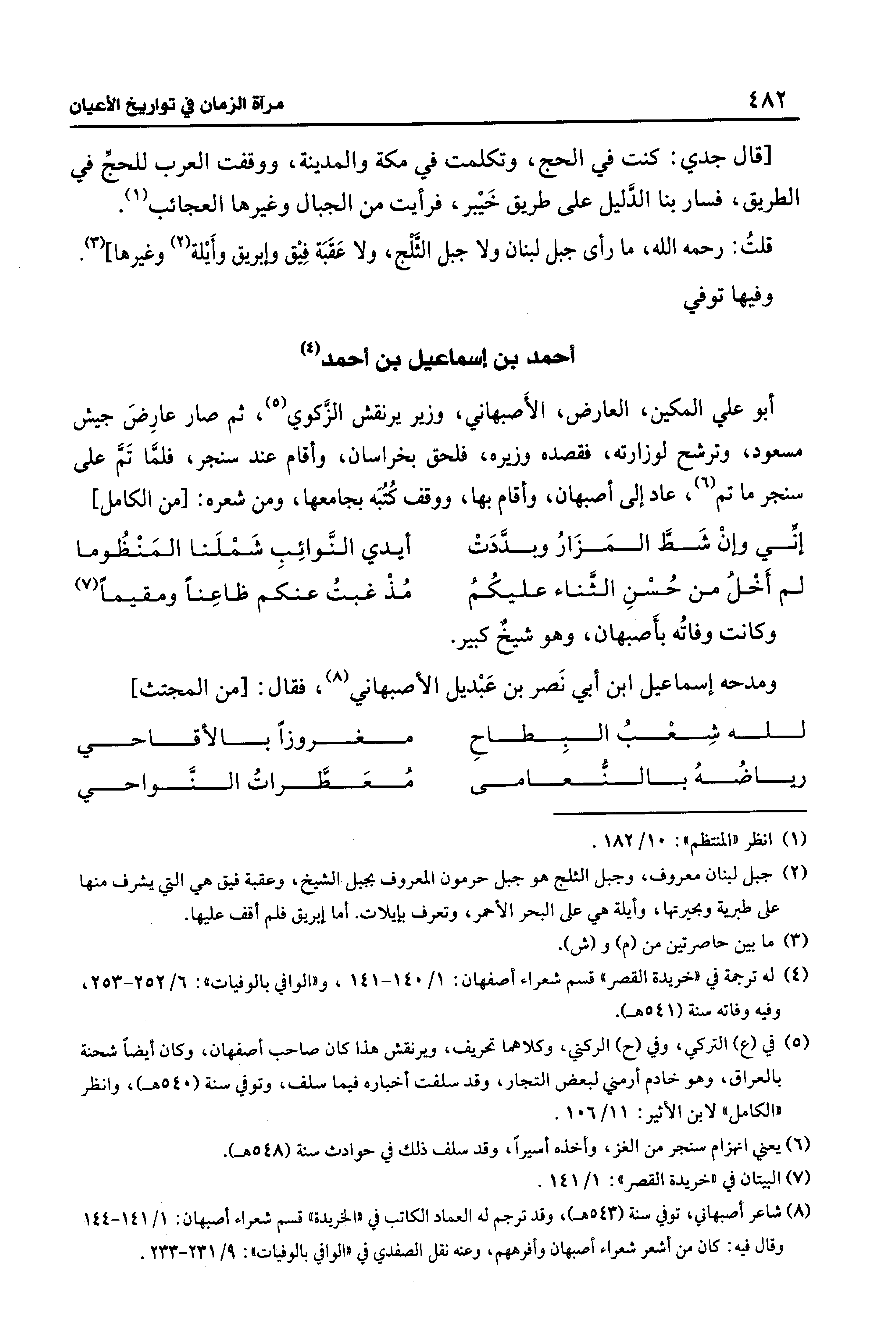 (¬8) شاعر أصبهاني، توفي سنة (543 هـ)، وقد ترجم له العماد الكاتب في "الخريدة" قسم شعراء أصبهان: 1/ 141 - 144 وقال فيه: كان من أشعر شعراء أصبهان وأفرههم، وعنه نقل الصفدي في "الوافي بالوفيات": 9/ 231 - 233.