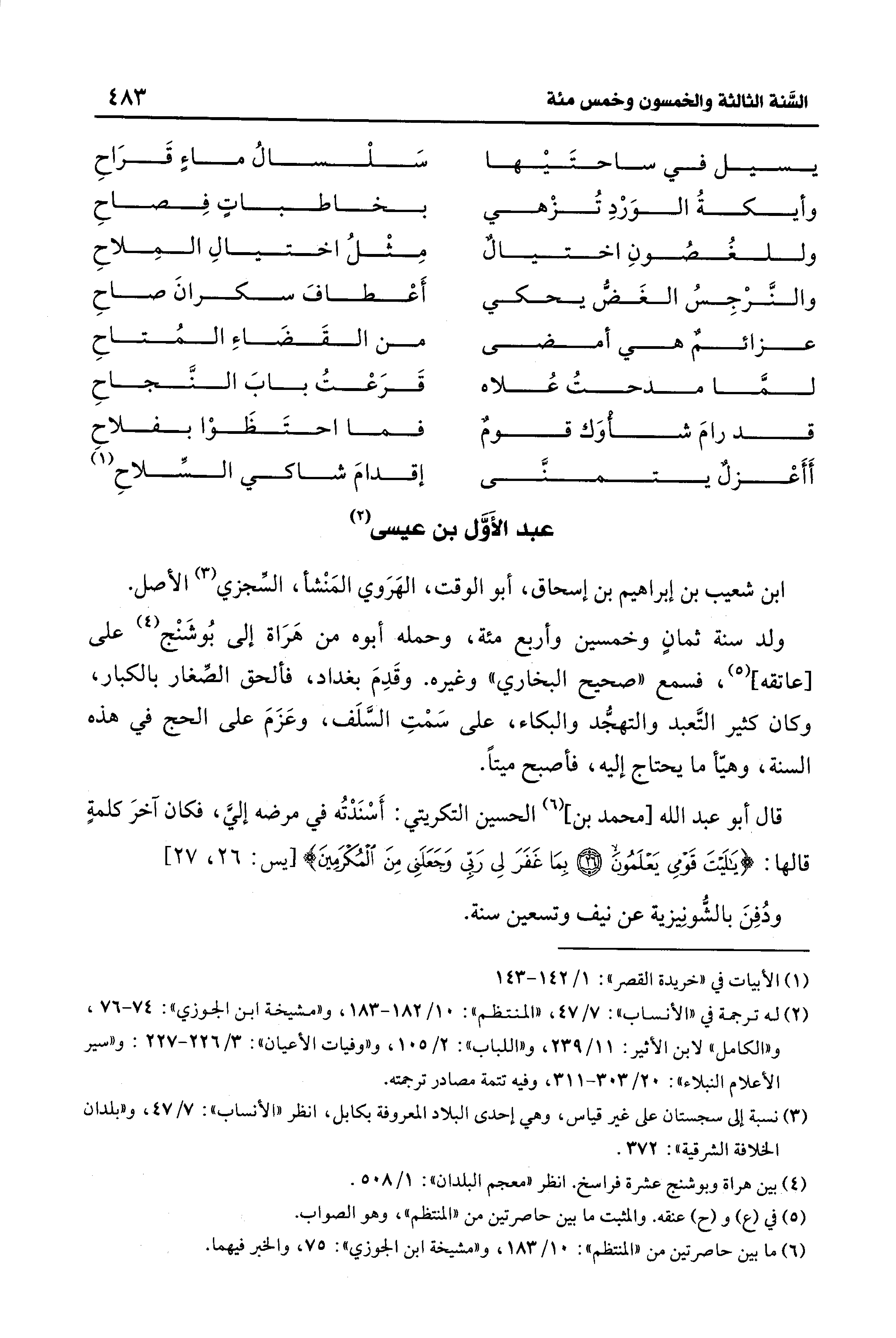 (¬6) ما بين حاصرتين من "المنتظم": 10/ 183، و"مشيخة ابن الجوزي": 75، والخبر فيهما.