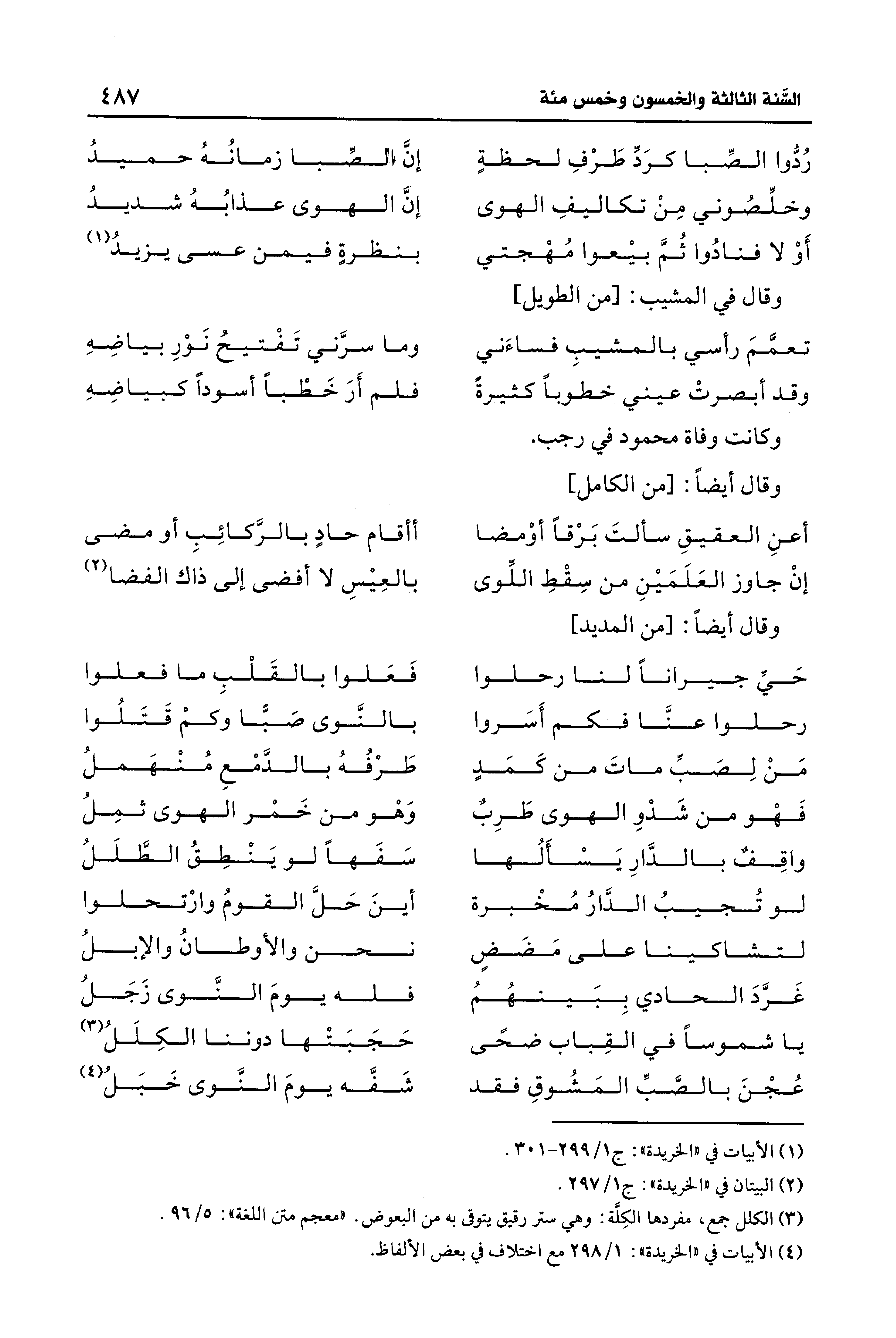 (¬4) الأبيات في "الخريدة": 1/ 298 مع اختلاف في بعض الألفاظ.