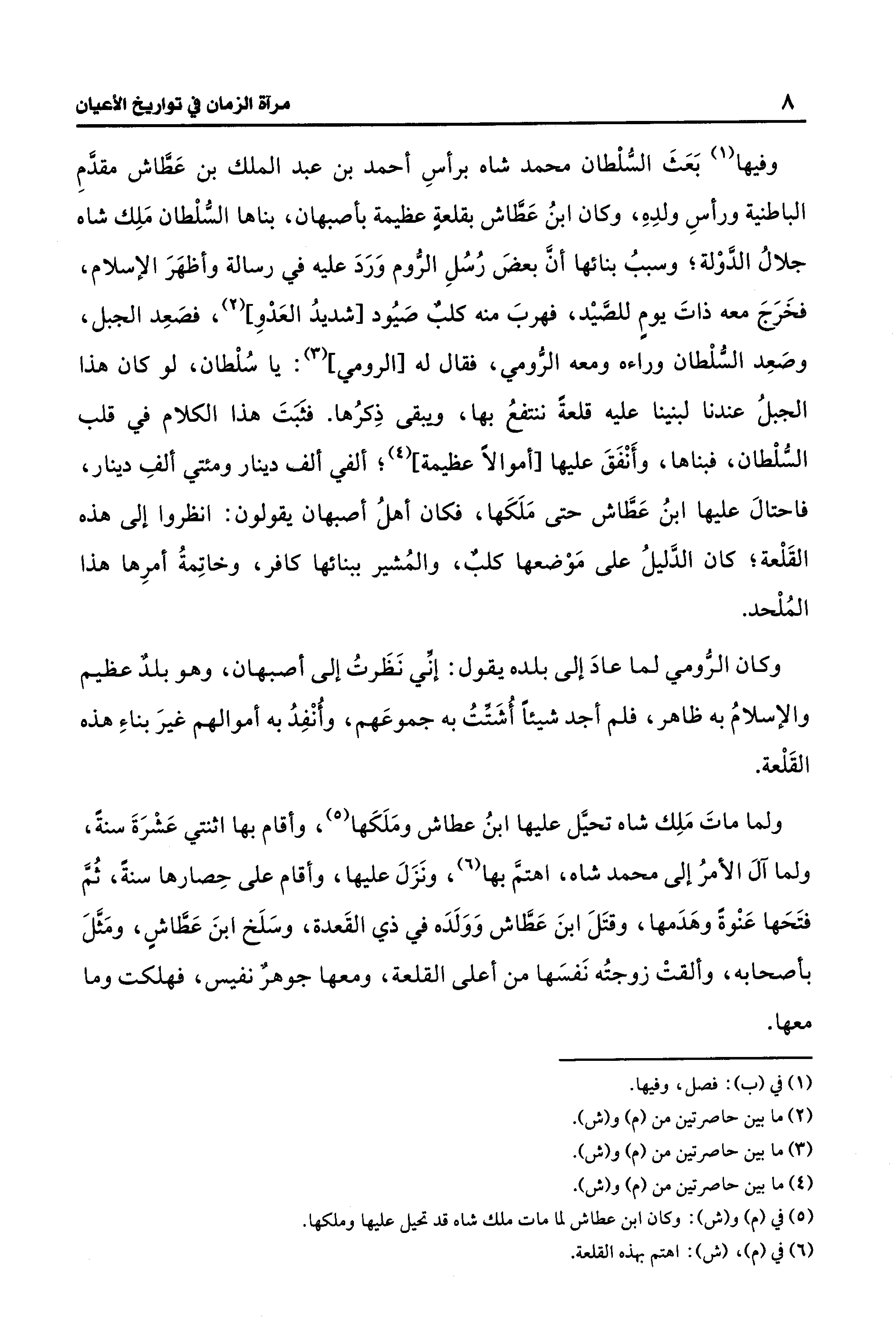 (¬5) في (م) و (ش): وكان ابن عطاش لما مات ملك شاه قد تحيل عليها وملكها.