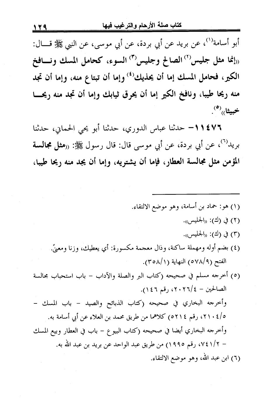 -[130]- وإما أن يبتاع منه، ومثل مجالسة الكافر مثل مجالسة الحداد، فإما أن يحرق ثوبك وإما أن تجد (¬2) ريحا منتنة (¬3) " (¬4).