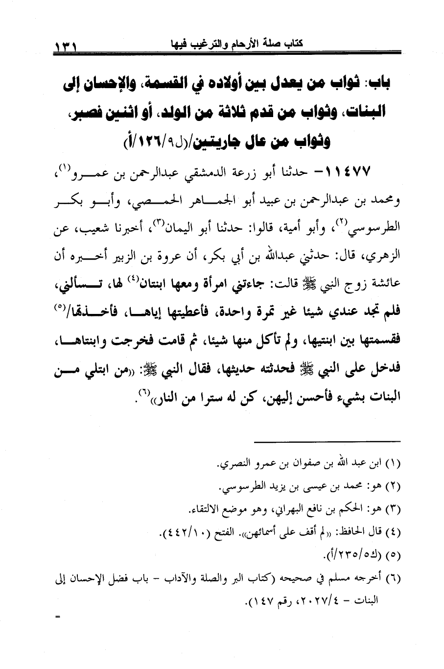 (¬6) أخرجه مسلم في صحيحه (كتاب البر والصلة والآداب -باب فضل الإحسان إلى البنات-4/ 2027، رقم 147). =