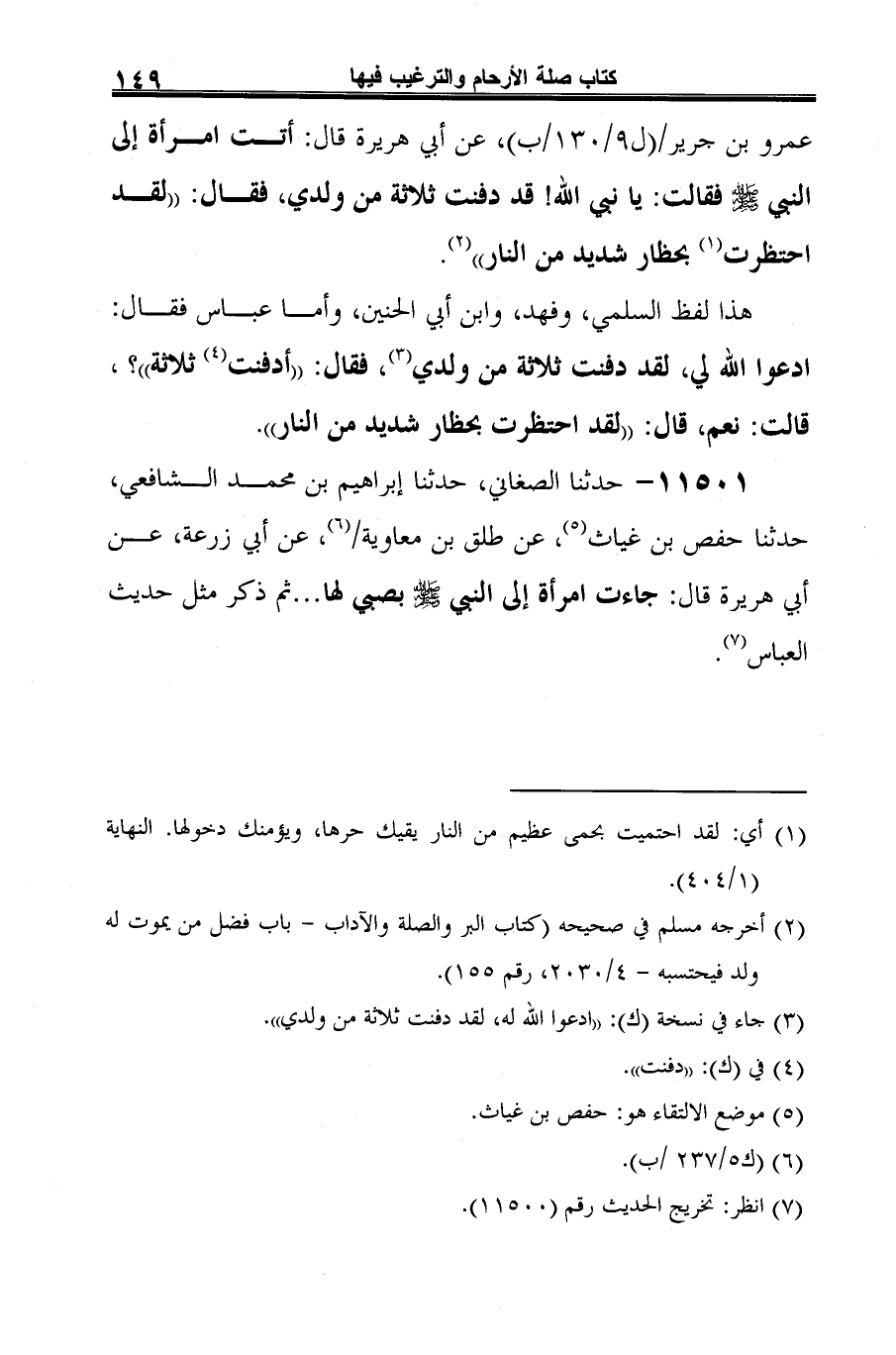 11501 - حدثنا الصغاني، حدثنا إبراهيم بن محمد الشافعي، حدثنا حفص بن غياث (¬1)، عن طلق بن معاوية (¬2)، عن أبي زرعة، عن أبي هريرة قال: جاءت امرأة إلى النبي -صلى الله عليه وسلم- بصي لها ... ثم ذكر مثل حديث العباس (¬3).