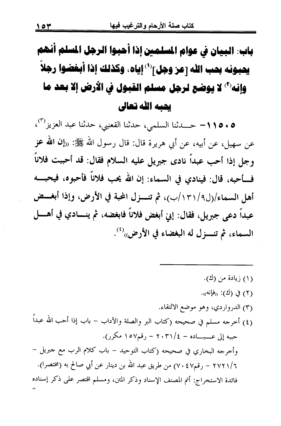 (¬2) أخرجه مسلم في صحيحه (كتاب البر والصلة والآداب -باب إذا أحب الله عبدًا حببه إلى عبادة- 4/ 2031 - رقم 157 مكرر).